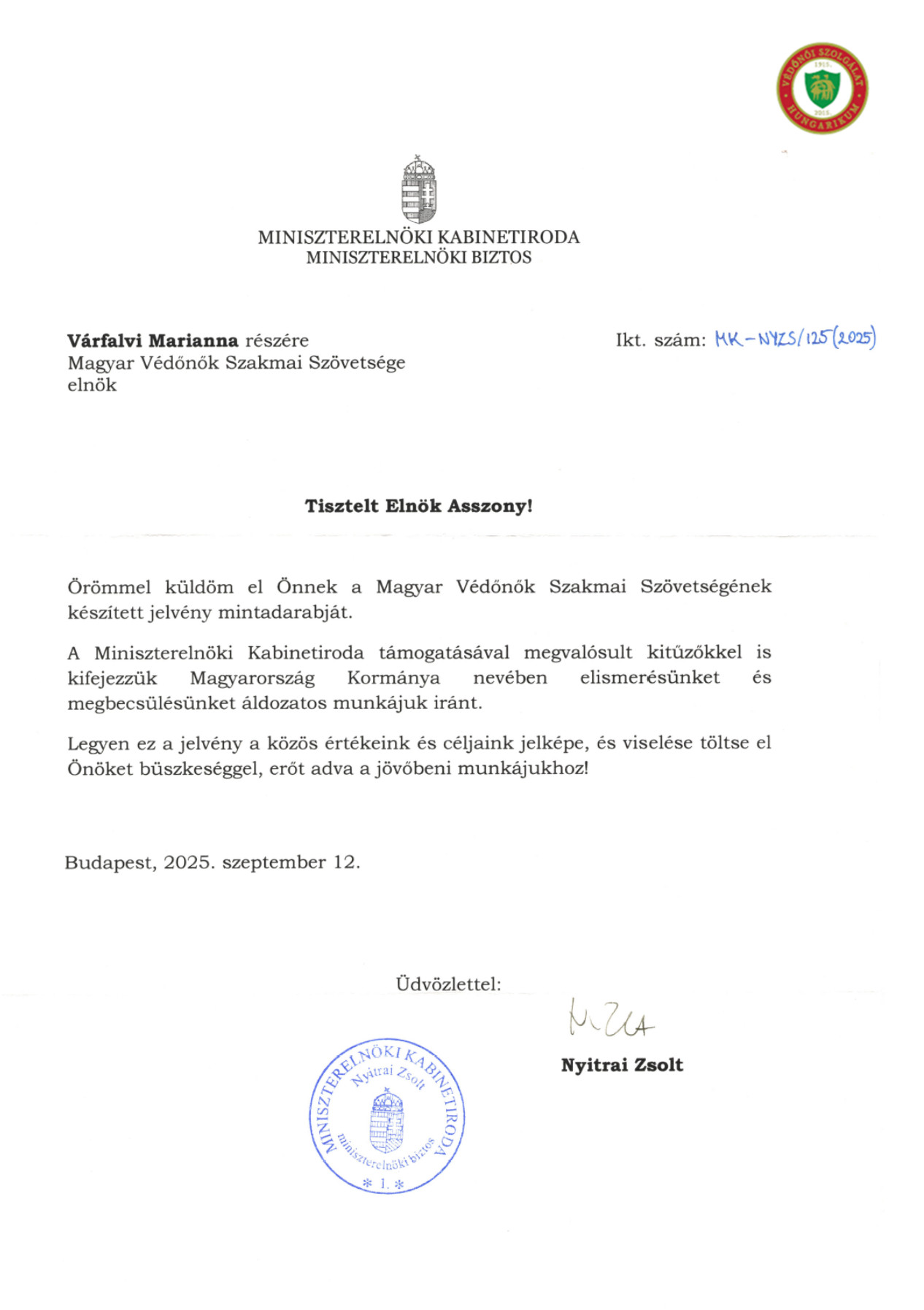 Köszönjük, hogy ez a jelvény a Miniszterelnöki Kabinetiroda támogatásával elkészülhetett és eljuthatott a Szolgálatban dolgozó Védőnőknek!