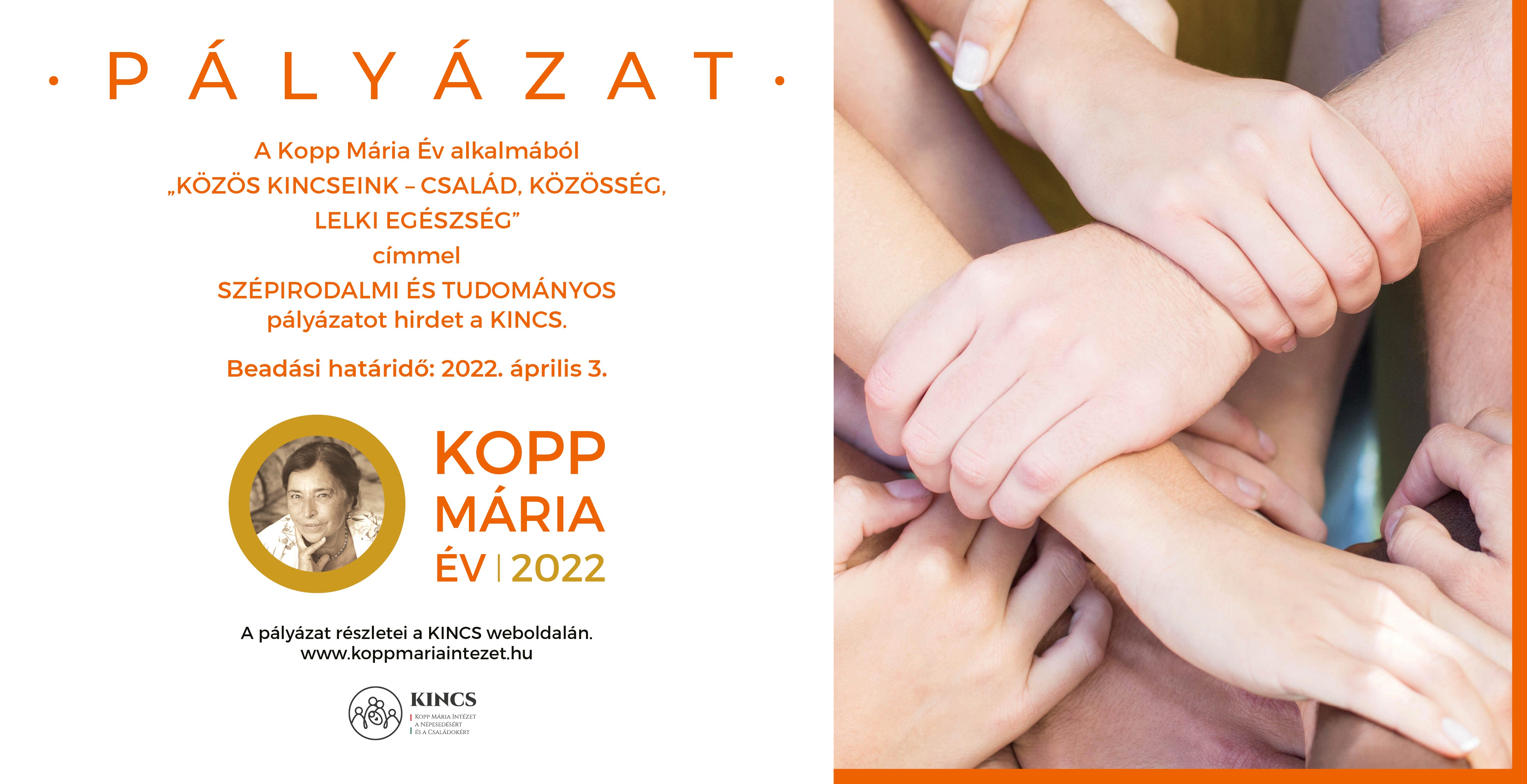 Továbbítom Fűrész Tünde elnök asszony meghívását a Kopp Mária Intézet a Népesedésért és a Családokért (KINCS) és a Semmelweis Egyetem Magatartástudományi Intézetének nevében Kopp Mária professzor asszony születésének 80., halálának 10. évfordulója alkalmából szervezett „Család, közösség, lelki egészség – Hungarostudy 2021” című online közvetített emlékkonferenciára.