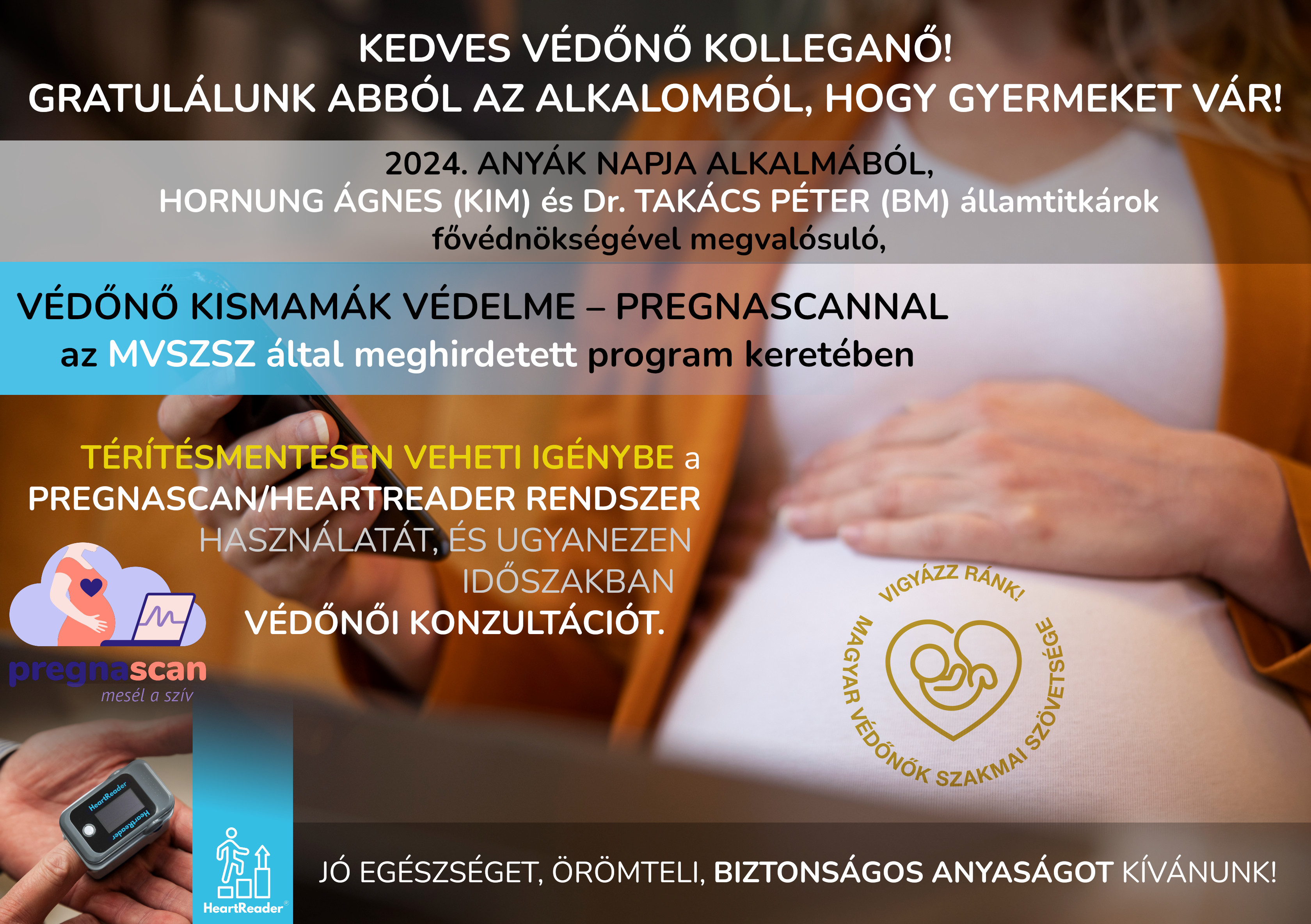 A Magyar Védőnők Szakmai Szövetsége és az E-MED4ALL egyedülálló, Pregnascan/HeartReader programjának térítésmentes használatát ajándékozza a védőnői hivatást választott kismamáknak.