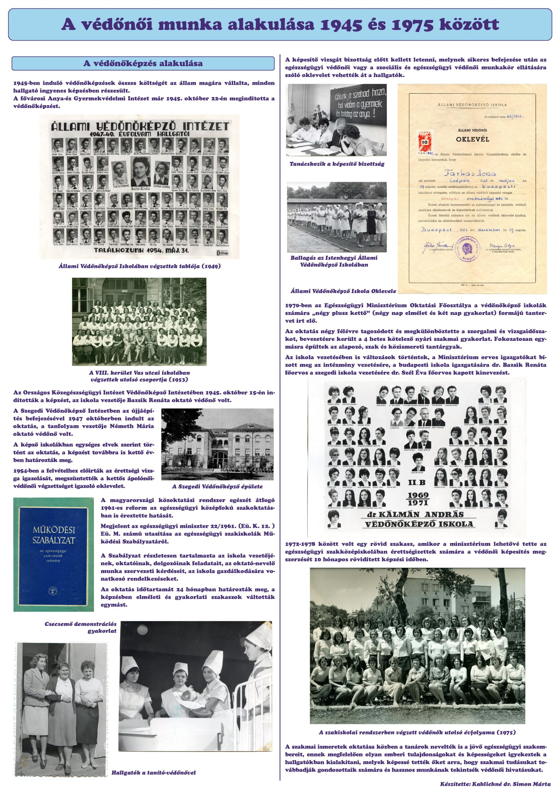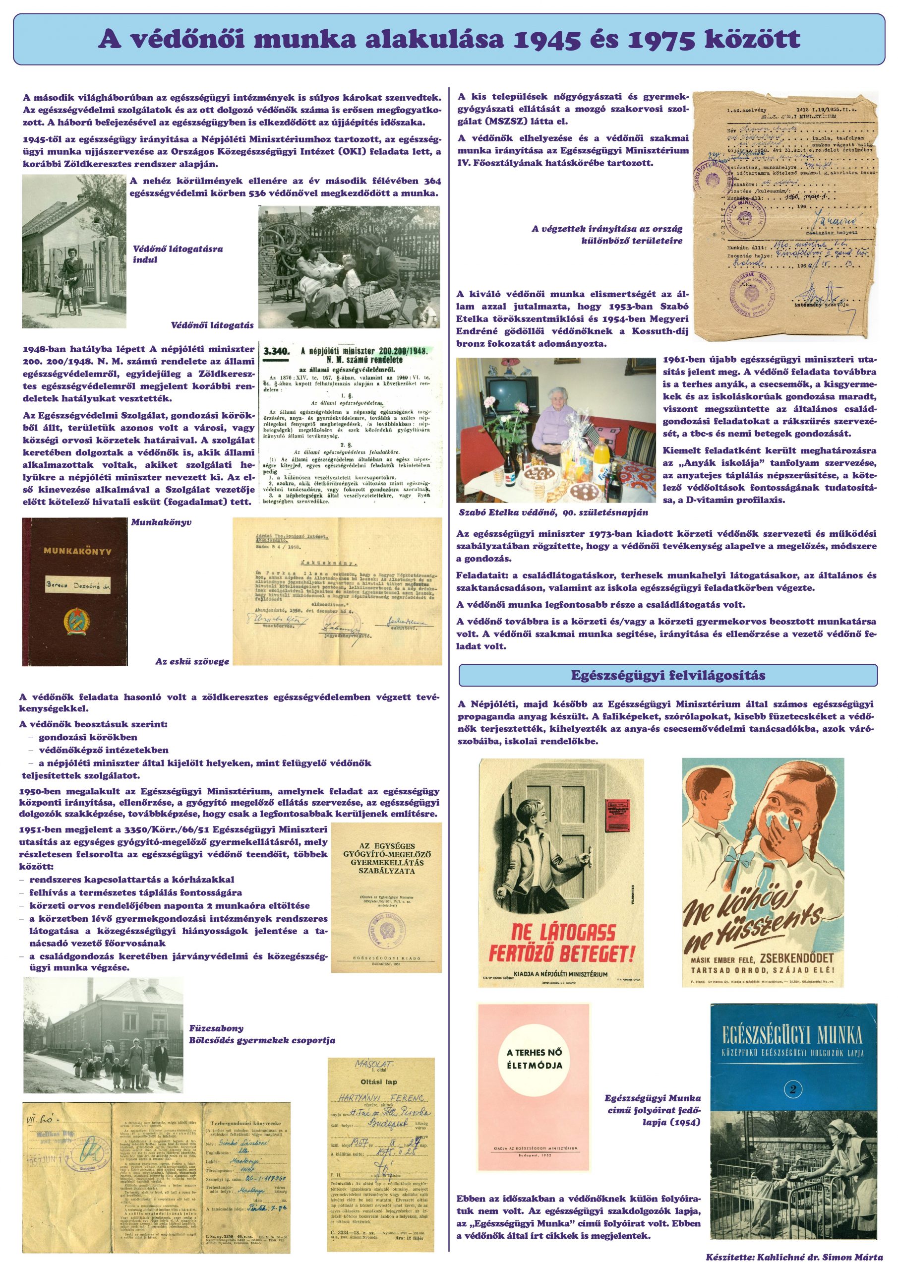 A leendő tárlat egyik célkitűzése a védőnői hivatás történetének bemutatása amelynek Kahlichné prof.emer.dr. Simon Márta által írt és szerkesztetett összefoglalóját itt tesszük közzé. Köszönjük Professzor Asszonynak, hogy rendelkezésünkre bocsátotta az anyagot!